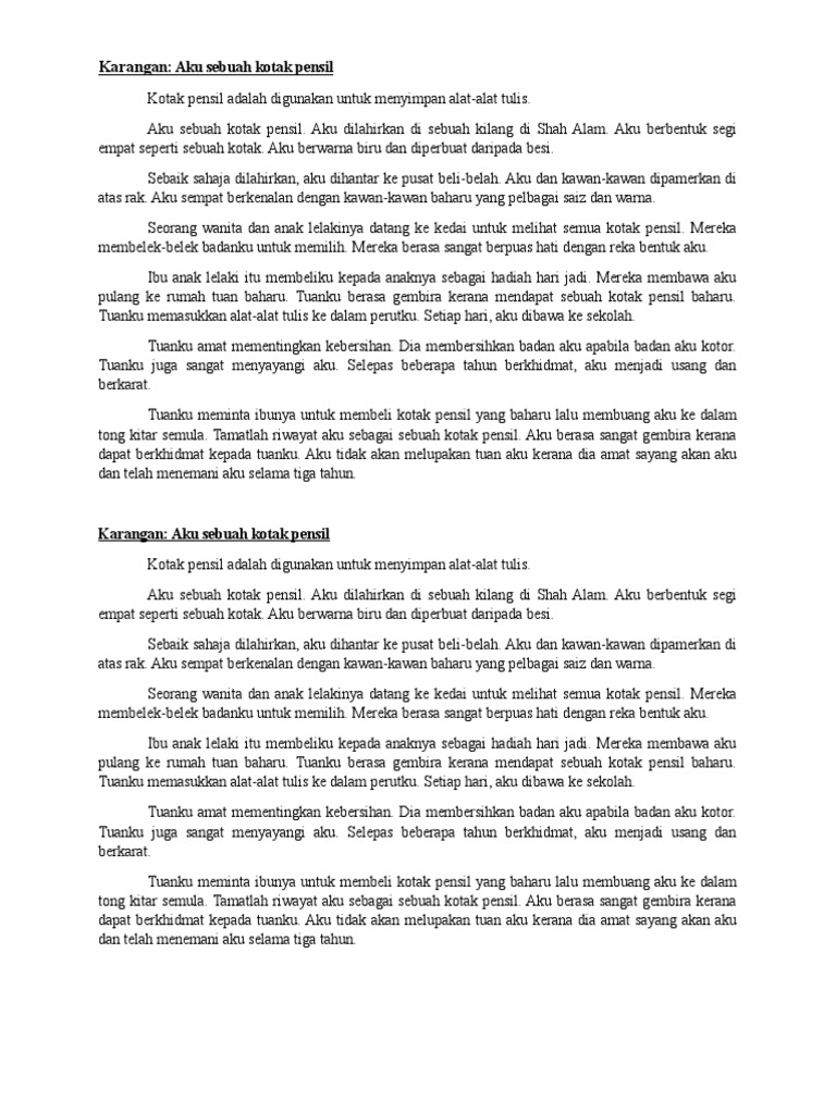 Contoh Karangan Basikal Saya Google Search Saya Art Drawings. Aku dilahirkan di sebuah kilang yang terletak di Shah Alam. Contoh Karangan Aku Sebuah Kotak Pensil Aku Sebuah Kotak Pensil Pdf Read more.