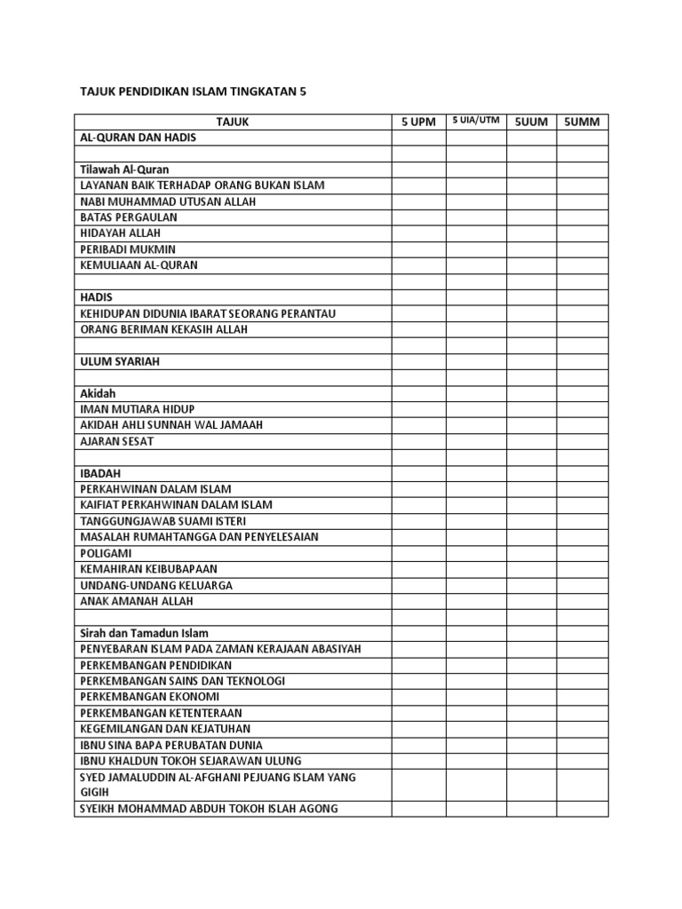 Tajuk Pendidikan Islam Tingkatan 5